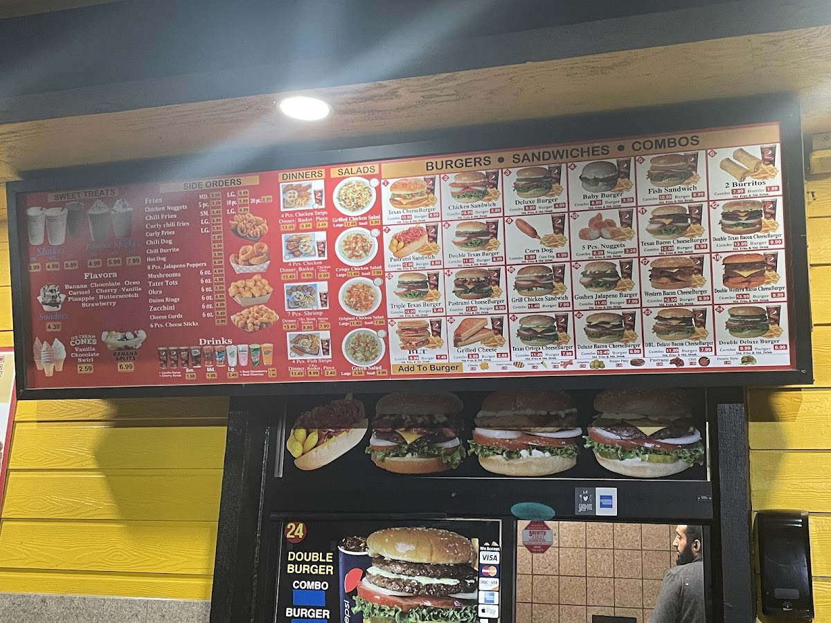 This menu is well-suited for lunch or casual dinners, offering options that are commonly ordered for a quick service experience. Items are priced individually or as part of combo meals that include fries and a drink, allowing for flexible ordering depending on hunger level and preference.